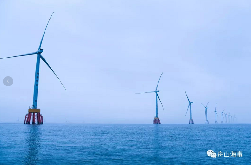 在浙江舟山六橫島南側,浙江省首個海上風電項目——國電舟山普陀6號海上風電場正如火如荼地建設。該工程東西長約12KM,南北寬約3KM,涉海海域面積35KM2,工程主要建設鋼管樁沉樁496根、承臺一期二期砼澆筑各63座、升壓站基礎鋼樁、海纜敷設等,將建成63臺風電機組、220千伏海上升壓站、2000噸級風機組裝碼頭。